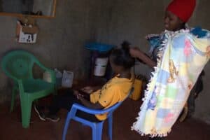 Siporah, a middle-aged woman, has shown remarkable resilience in the face of life’s hardships, working tirelessly to provide for her family. Following a separation from her violent husband, Siporah became the sole caretaker for their six children. Initially renting a home in town, financial strain forced her to return to her maternal home, only to face additional challenges due to her brother’s violent behavior and neglect of their ailing mother, who developed symptoms of a mental illness. Taking responsibility, Siporah rented another house where she now cares for her mother, her children, and two grandchildren. Determined to improve their situation, Siporah supported her daughter’s vocational training in hairdressing and beauty therapy. With assistance from the project, her daughter now runs a salon, which has grown to include vegetable and charcoal sales to supplement income during low customer periods. “My biggest worry was that my daughter would remain jobless, but this project has given her an opportunity and become a source of income for our family.”